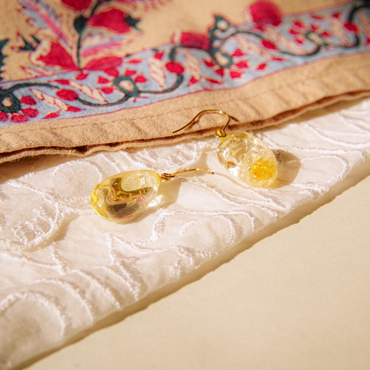 黄金の光を閉じ込めたような、キラリと輝くシトリンのドロップピアス。